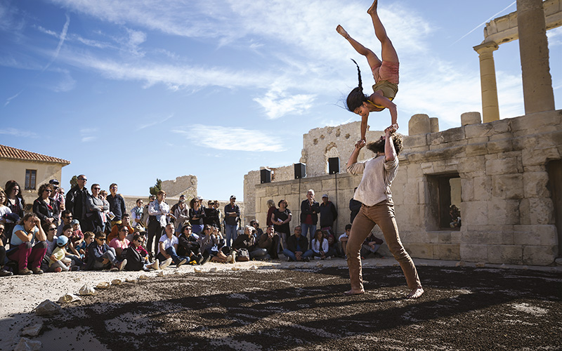 Dans un décor épuré, les artistes composent au sol comme en plein vol un duo de chair et d’âme entre cirque et danse. Leur corps-à-corps, d’une grande force visuelle nous offre à voir la beauté brute du monde à travers une danse sensuelle et physique.