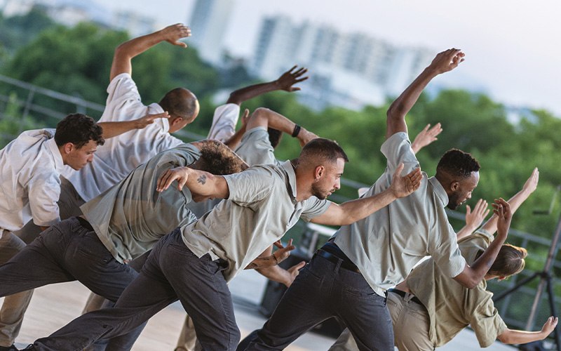 Prélude Out est l’histoire de la rencontre entre la musique de Romain Dubois et la physicalité des danseurs et danseuses.